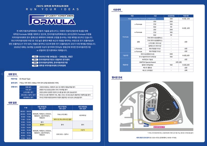 [파이낸셜경제=김예빈 기자] 영광군과 (사)한국자동차공학회는 전국 대학생들의 창의적 도전 무대인 ‘2025 대학생 자작자동차 경진대회’가 오는 9월 26일(금)부터 28일 일요일까지 영광 한국자동차연구원 e-모빌리티 연구센터에서 개최한다고 밝혔다.