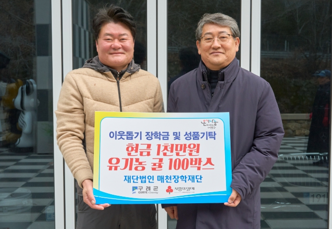 [파이낸셜경제=김예빈 기자] 전남 구례군은 지난 14일, (재)매천장학재단(이사장 김용목)이 지역 내 저소득가정 학생들을 위한 장학금 1,000만 원과 유기농 귤 100박스를 기탁했다고 밝혔다.