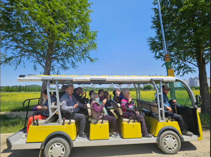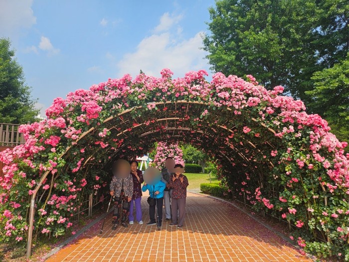 꽃이 만개한 야외 나들이, 전동차를 타고 들판을 달리며 손을 흔드는 어르신들, 넓고 밝은 실내 공간에서 여유롭게 식사하고 활동하는 모습은 이곳이 단순히 머무는 공간이 아니라 활동하고 기억이 쌓이는 장소임을 증명한다.