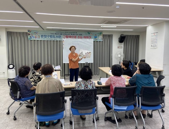 | ▲ 은평구립도서관, 시니어 독서 문화 프로그램 ‘그림책으로 쓰는 이야기’ 진행 모습 |