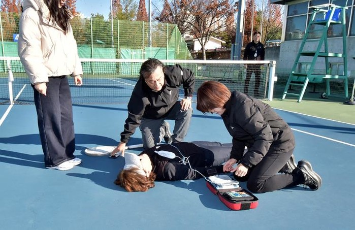 공사는 최근 테니스와 같은 고강도 스포츠 활동 증가로 운동 중 심정지 등 예기치 못한 응급상황 발생 위험이 높아짐에 따라 대응 역량을 강화하기 위해 모의훈련을 진행했다.