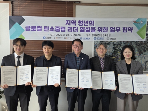 [파이낸셜경제=김예빈 기자] 김해시는 20일 시청 환경국장실에서 김해연구원(김해시 탄소중립지원센터), 가야대학교, 김해대학교, 인제대학교와 함께 ‘지역 청년의 글로컬 탄소중립 리더 양성을 위한 업무협약’을 체결했다.