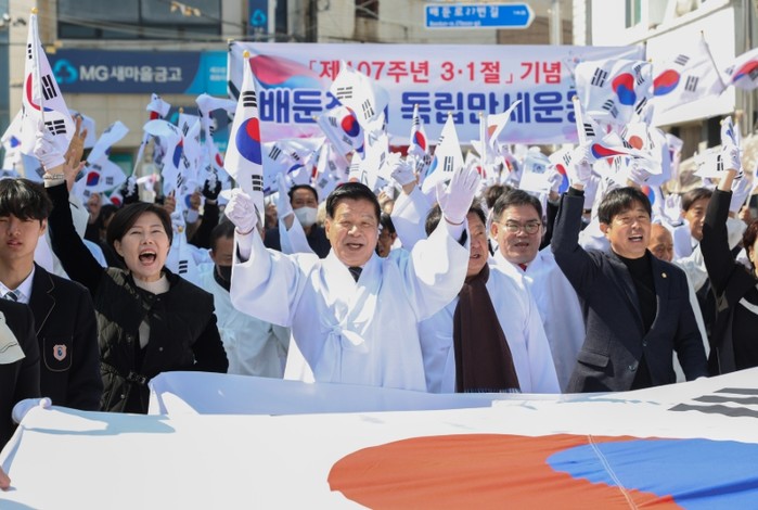 이후 행사 참가자들은 창의탑을 출발해 회화면 배둔시장을 지나는 길을 함께 행진하며 107년 전 배둔장터에 울려 퍼진 그 날의 함성을 재현해 참석자들에게 깊은 울림과 감동을 선사했다.