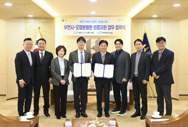 [파이낸셜경제=김기보 기자] 부천시는 지난 11일 오정본병원과 ‘빙파니아’ 현장 의료지원을 위한 업무협약을 체결했다. 이번 협약은 오는 19일부터 내년 2월 22일까지 운영되는 겨울철 야외 아이스링크장 ‘부천 아이스월드 빙파니아’를 찾는 스포츠 소외계층의 안전 확보를 위해 추진됐다.