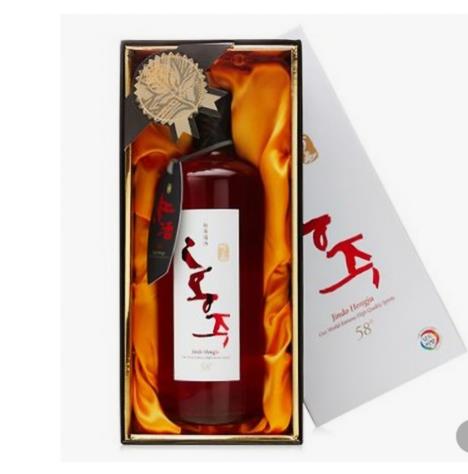 ‘진도홍주58도’는 진도 쌀과 지초로 빚은 순곡주로 시간이 지날수록 풍미가 좋아지며 장기간 숙성으로 부드러운 향, 강하고 깊은 맛이 특징이다.