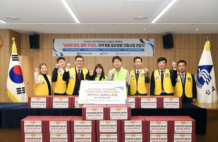 장준용 동래구청장은 “지역사회를 위해 끊임없이 봉사하고 헌신해 주시는 양지라이온스클럽에 깊은 감사를 드린다”라며 “기탁해 주신 성품은 동래종합사회복지관을 통해 고립 위험이 높은 중장년 1인 가구와 홀로 어르신 등 도움이 필요한 이웃들에게 소중히 전달하겠다”고 말했다.