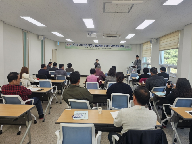 이번 교육은 사업 참여 마을 운영자의 역량을 높여 귀농·귀촌 희망자의 만족도를 높이기 위해 25일까지 1박 2일 일정으로 마련했다.