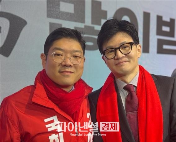 | ▲사진. 국민의힘 강동을 이재영 국회의원 후보와 한동훈 비상대책위원장 |