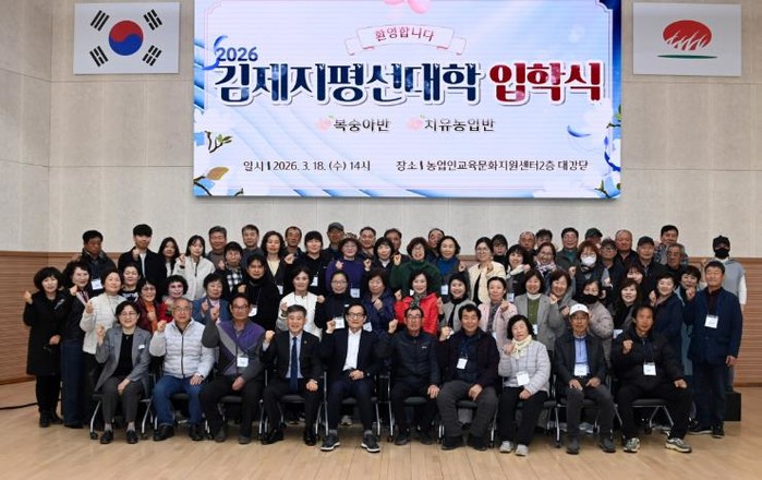 [파이낸셜경제=김예빈 기자] 김제시는 18일 농업인교육문화지원센터에서 110여명이 참석한 가운데 김제 지평선대학 입학식을 가졌다고 밝혔다.