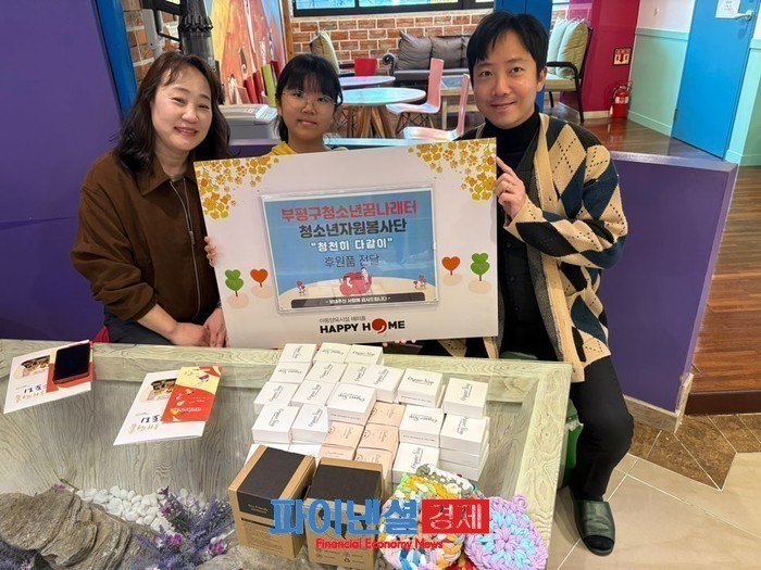 [파이낸셜경제=김기보 기자] 부평구(구청장 차준택) 청소년꿈나래터는 지난 12일 소속 청소년자원봉사단 ‘청천히 다같이’가 ‘부평구 해피홈 보육원’을 방문해 직접 만든 천연 수제비누를 전달했다고 밝혔다.