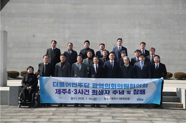[파이낸셜경제=김영란 기자] 제주특별자치도의회 더불어민주당 교섭단체(원내대표 송창권)는 2월 20일 오전 11시 제주4·3 평화공원에서 더불어민주당 전국광역의회의원협의회와 함께 제주4·3 희생자 추모 및 참배를 진행했다.