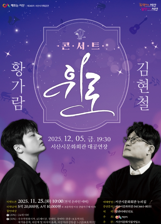 예매는 오는 11월 25일 오전 10시부터 서산시 문화회관 누리집을 통해 가능하며, S석 2만 원, A석 1만원이다.