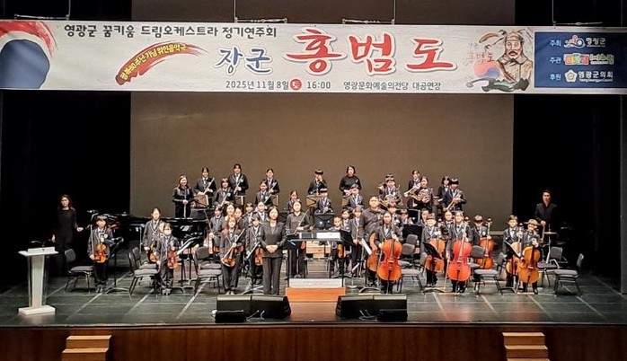 [파이낸셜경제=김예빈 기자] 영광군은 11월 8일 영광문화예술의전당 대공연장에서 200여 명의 지역 아동과 가족, 군민이 모인 가운데 영광군 꿈키움드림오케스트라 정기 연주회 “장군 홍범도” 위인 음악극을 선보였다.