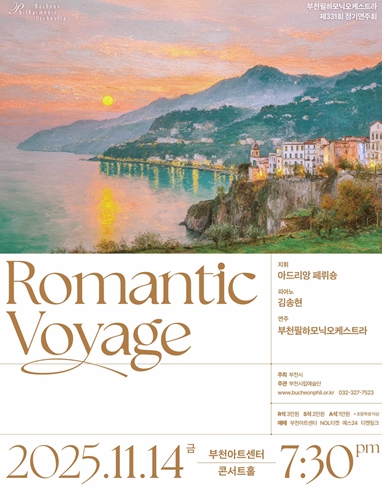 [파이낸셜경제=김기보 기자] 부천필하모닉오케스트라가 오는 11월 14일 오후 7시 30분 부천아트센터 콘서트홀에서 제331회 정기연주회 'Romantic Voyage'를 개최한다. 공연에는 상임지휘자 아드리앙 페뤼숑과 부천필이 무대에 오르며, 협연자로는 탁월한 음악적 이해력과 구성력으로 호평받는 피아니스트 김송현이 ‘낭만적 여정’에 함께 오른다.
