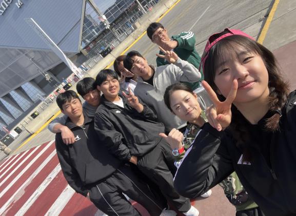 | ▲ 지난 2월 트로이대 국제교류 프로그램에 참가한 김채은 학생(오른쪽 맨 앞)과 함평골프고 학생들 |