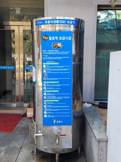 | ▲ 철산3동 행정복지센터 앞에 설치된 유용미생물(EM) 보급기. |