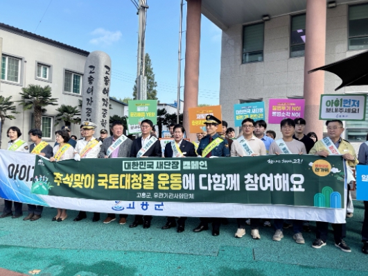 군은 전 군민 참여 분위기 확산을 위해 지난 16일 고흥읍 동초등학교 후문 사거리에서 공무원과 유관기관단체 회원 등 80여 명이 참석한 가운데 '대한민국 새단장' 캠페인을 전개했다.