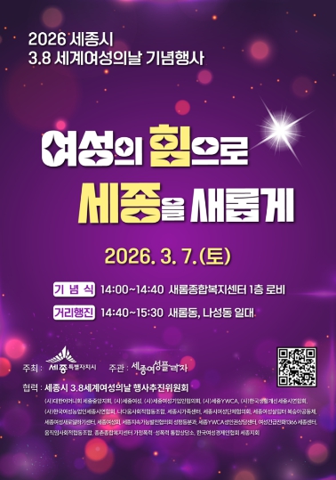 세종시 3.8 세계여성의 날 행사추진위원회가 함께하는 이번 행사는 세종특별자치시가 주최하고 세종여성플라자가 주관하며, 세종시 내 18개 여성 기관·단체가 참여한다.