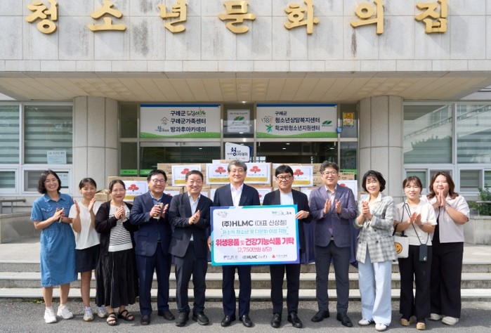 [파이낸셜경제=김예빈 기자] 전남 구례군은 지난 17일 구례군청소년문화의집 앞에서 ㈜에이치엘엠씨(대표 신상철)로부터 2,750만 원 상당의 여성 위생용품 및 건강기능식품 기부 전달식을 가졌다고 밝혔다.