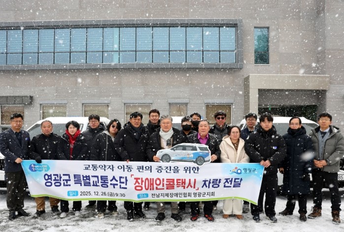 [파이낸셜경제=김예빈 기자] 영광군은 12월 26일 장애인콜택시 사업 수탁기관인 (사)전남지체장애인협회 영광군지회에 신규 구입한 장애인콜택시 3대를 전달했다.