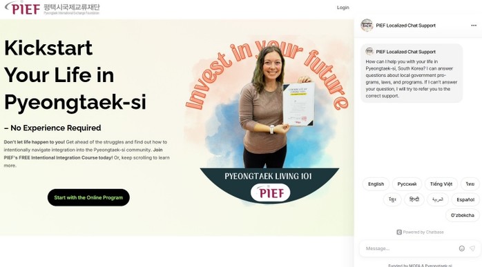 | ▲ 평택생활에 필요한 강의와 AI챗봇이 탑재된 웹사이트 |