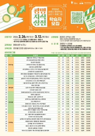 | ▲ 2026년 광명시 평생학습 상반기 프로그램 '광명지식상점' 학습자 모집 안내문. |