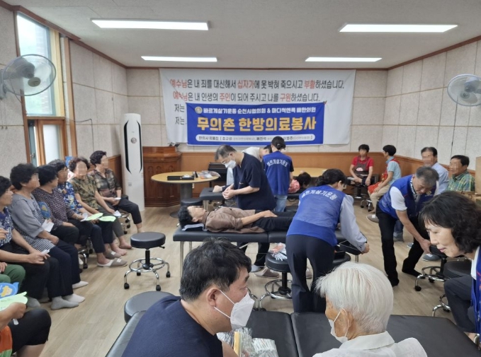 [파이낸셜경제=김예빈 기자] 순천시 황전면행정복지센터는 지난 10일 바르게살기운동순천시협의회와 배한의원이 함께 황전면 용림마을을 방문해 한방의료봉사 활동을 펼쳤다고 밝혔다.