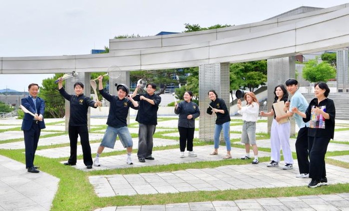 | ▲ 외식분야 창업 전문교육시설이 들어서는 옛 노인복지회관 앞에서 포즈를 취한 호남대 청년 쉐프들 |