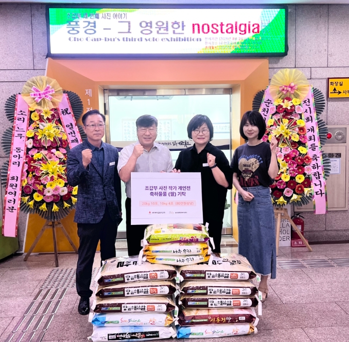 | ▲ 사진 개인전 축하화환 대신 받은 쌀 240kg 기탁 |