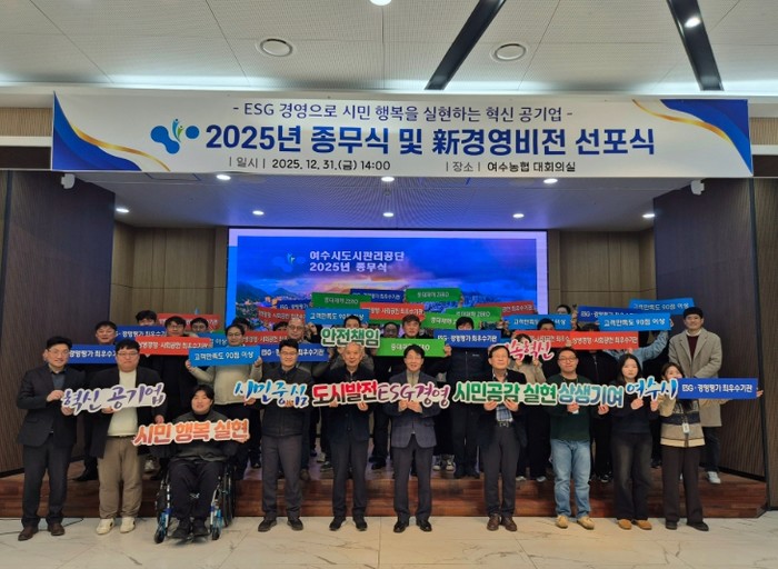[파이낸셜경제=김예빈 기자] 여수시도시관리공단은 31일 공단 대회의실에서 ‘新 경영비전 선포식’을 개최하고, 향후 5년간 공단이 나아갈 새로운 경영 철학과 조직 혁신 의지를 대내외에 공식적으로 밝혔다.