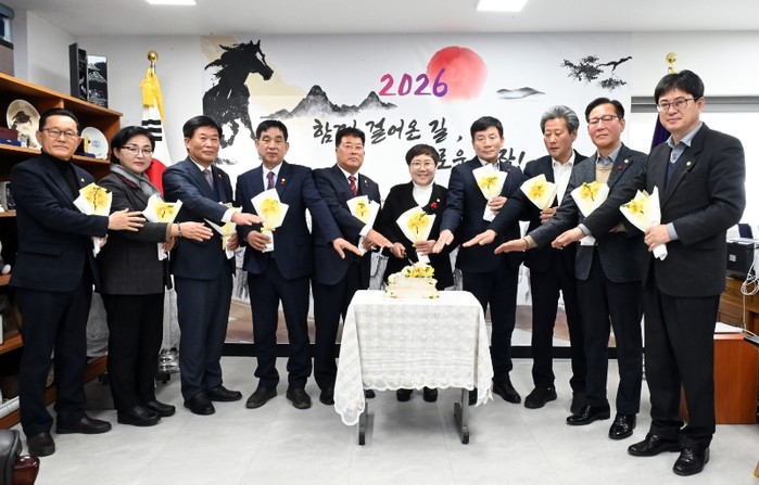 정영란 의장은 인사말에서 “2026년은 그동안의 의정 성과를 바탕으로 소통과 화합을 통해 군민의 삶에 한 걸음 더 다가가는 해가 되기를 바란다”며 “지난 한 해 동안 헌신해 주신 의원들과 직원들께 깊이 감사드린다”고 말했다.