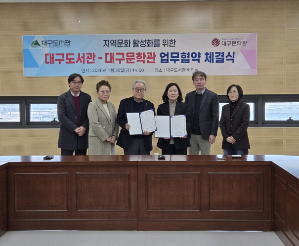 [파이낸셜경제=김지훈 기자] 대구도서관과 대구문학관은 시민을 위한 독서문화 분야 협력을 강화하고 상호 발전을 도모하기 위해 1월 30일 오후 2시, 대구도서관 회의실에서 업무협약을 체결했다.