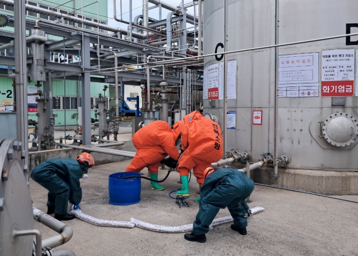 이번 훈련은 정읍 산업단지 황산 유출과 군산 이차전지 공장 유해화학물질 누출 등 최근 발생한 화학사고를 계기로 마련됐으며, 유해화학물질이 누출된 산업시설에서 인명구조와 누출 차단작업을 동시에 수행하는 복합 상황을 가정해 진행됐다.
