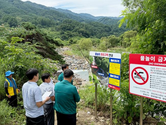 [파이낸셜경제=김예빈 기자] 함양군은 여름 휴가철을 맞아 물놀이 인파가 급증하는 성수기를 대비해 8일 행정안전부, 경상남도와 함께 물놀이 관리구역에 대한 긴급 합동 안전점검을 실시했다.