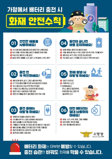 | ▲ 가정 내 배터리 충전 시 화재 안전수칙 |
