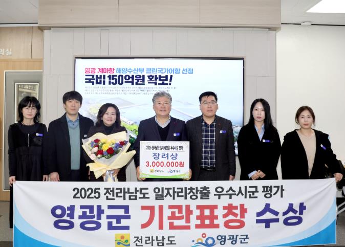 | ▲ 영광군, 전라남도 일자리 창출 우수 시․군 4년 연속 기관 표창 수상 |