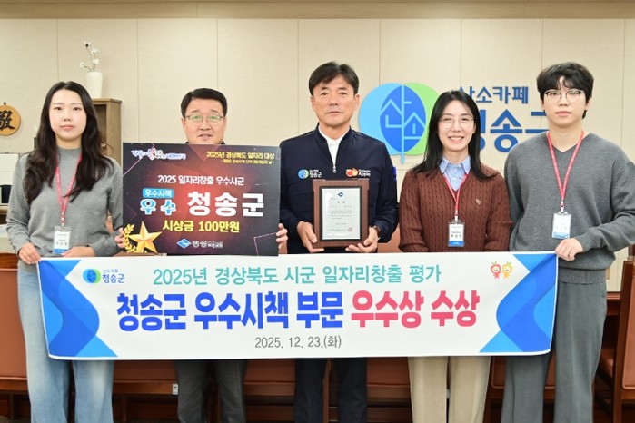 [파이낸셜경제=김지훈 기자] 청송군은 지난 3월 발생한 대형 산불 피해 극복과 지역사회 안정 회복을 위한 노력을 인정받아 ‘2025년 경상북도 시·군 일자리창출 추진실적 평가’에서 우수시책 부문 우수상을 수상했다.