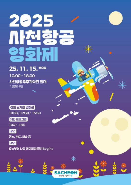 [파이낸셜경제=김예빈 기자] 사천시는 오는 11월 15일, 사천항공우주과학관 주차장 일원에서 ‘2025 사천항공영화제’를 개최한다.