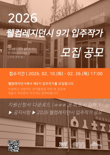 [파이낸셜경제=김예빈 기자] (재)김해문화관광재단(대표이사 최석철) 김해문화도시센터는 오는 10일부터 26일까지‘2026 웰컴레지던시 제9기 입주작가’를 모집한다.