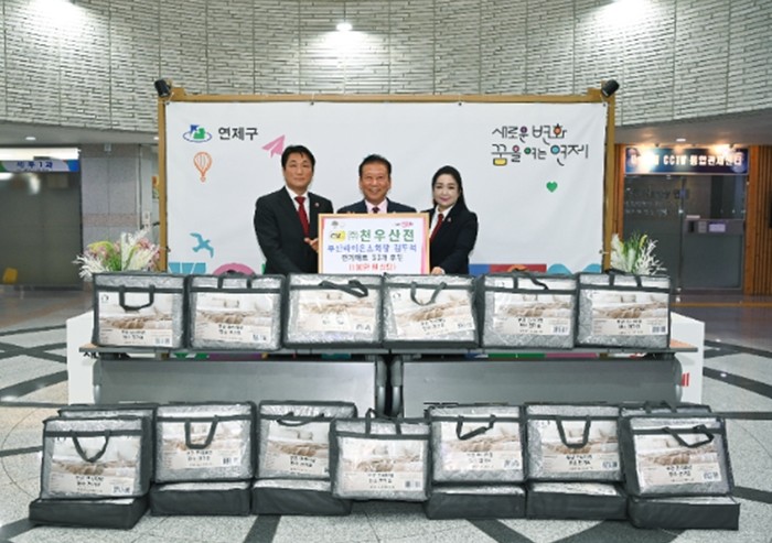 [파이낸셜경제=박영진 기자] 연제구는 11월 24일 ㈜천우산전(대표 김두석)으로부터 지역 내 저소득 중장년층 1인 가구 지원을 위한 전기매트 33개(100만 원 상당)를 전달받았다.