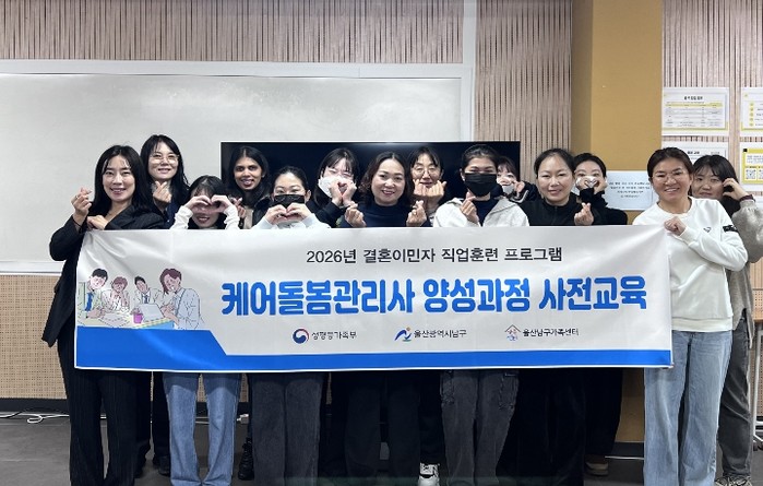 [파이낸셜경제=김예빈 기자] 울산 남구가 결혼이민자의 안정적인 사회 정착과 경제적 자립을 돕기 위한 전문 취업지원 사업인 ‘2026년 결혼이민자 취업지원(케어돌봄관리사 양성과정)’을 27일부터 본격 시작했다.