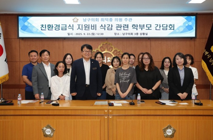 [파이낸셜경제=김예빈 기자] 울산 남구의회 최덕종 의원(더불어민주당·신정4동·옥동)은 22일 3층 의회상황실에서 친환경 급식 지원 예산 삭감과 관련해 학부모 간담회를 개최했다.