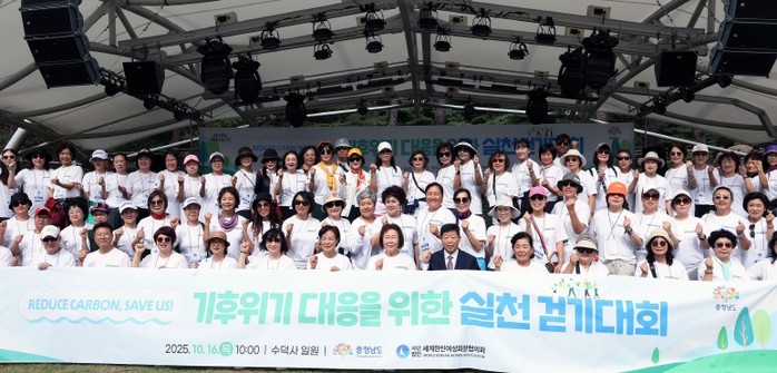 [파이낸셜경제=김영란 기자] 충남도와 세계한인여성회장협의회는 16일 예산 수덕사 일원에서 기후 위기에 대응하고 일상 속 친환경 실천을 독려하기 위한 ‘탄소중립 실천 걷기대회’를 개최했다.