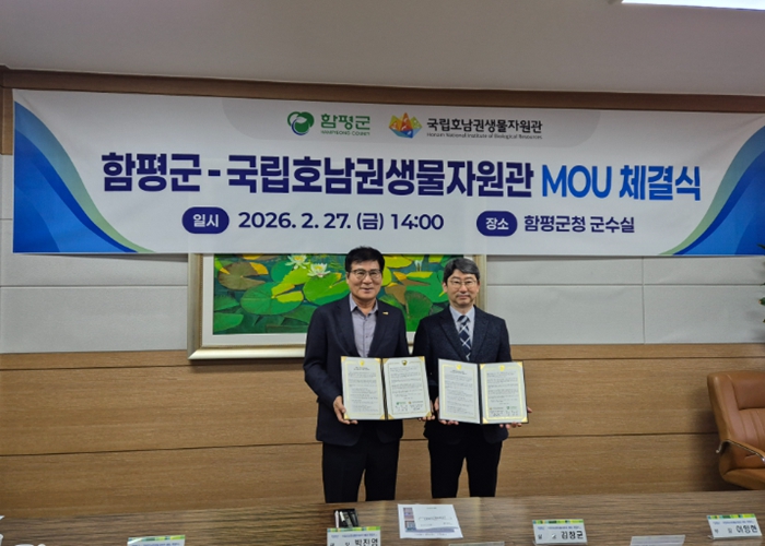 [파이낸셜경제=김예빈 기자] 국립호남권생물자원관과 함평군은 2월 27일, 섬·연안 생물자원의 보전 가치 확산과 전시·교육 활성화를 위해 업무협약(MOU)을 체결했다.