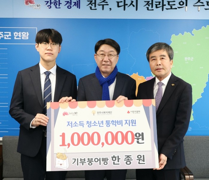 윤방섭 전주시복지재단 이사장은 “나눔을 위해 직접 ‘기부붕어빵’을 운영해 주신 한종원 님께 깊이 감사드린다”면서 “소중한 성금은 꼭 필요한 청소년들에게 힘이 될 수 있도록 책임 있게 집행하겠다”고 말했다.
