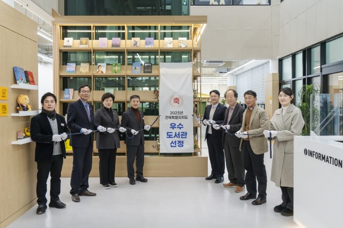 [파이낸셜경제=김예빈 기자] 김제시립도서관은 15일 시립도서관 꿈빛라운지에서‘2025년 전북특별자치도 공공도서관 운영평가 우수도서관’ 선정에 따른 현판 제막식을 개최했다고 밝혔다.