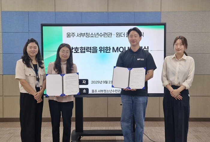 [파이낸셜경제=김예빈 기자] 울주군시설관리공단(이사장 최인식) 서부청소년수련관은 9월 23일, 자원순환 및 환경 교육 활성화를 위해 ㈜원더플라스틱(대표 김민석)과 업무협약을 체결했다.