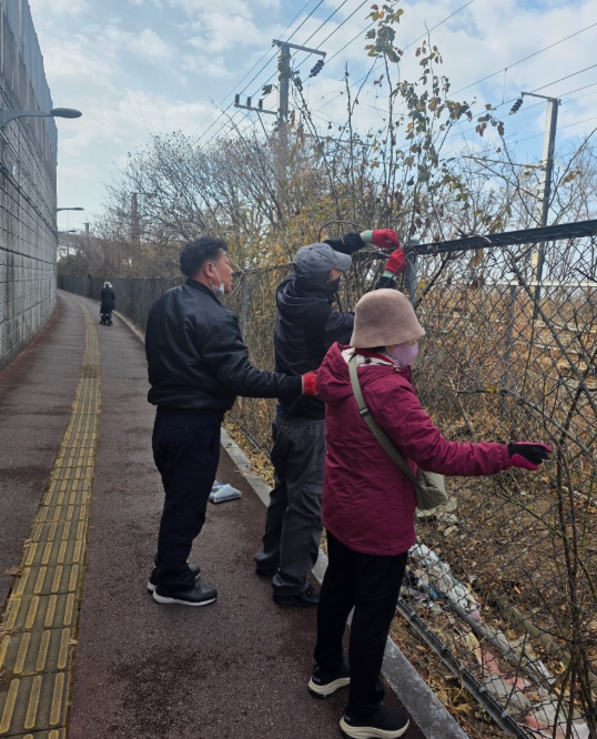 이날 위원회 회원들은 추운 날씨에도 불구하고, 장미꽃길 800m 구간의 무성한 넝쿨과 잡초를 제거하며 구슬땀을 흘렸다. 아울러 장미가 건강하게 자랄 수 있도록 줄기 결속 작업도 함께 진행했다.
