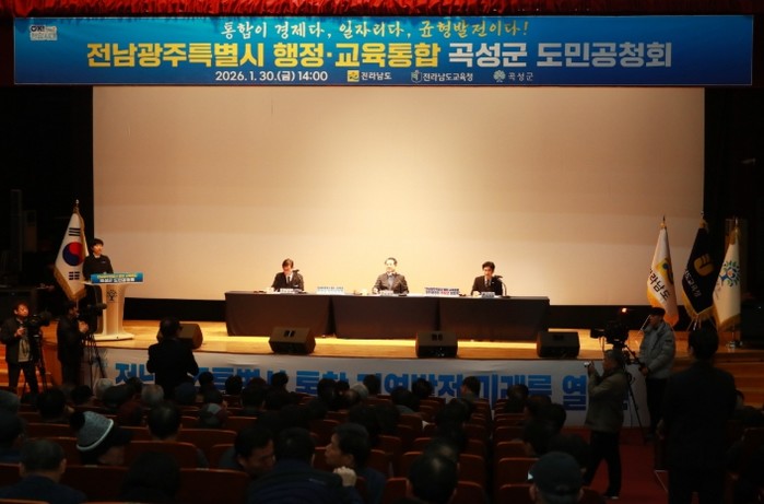 [파이낸셜경제=김예빈 기자] 전남 곡성군은 지난 1월 30일 전남광주특별시 행정·교육통합에 대한 의견을 수렴하기 위해 곡성레저문화센터 동악아트홀에서 도민공청회를 개최했다고 2일 전했다.
