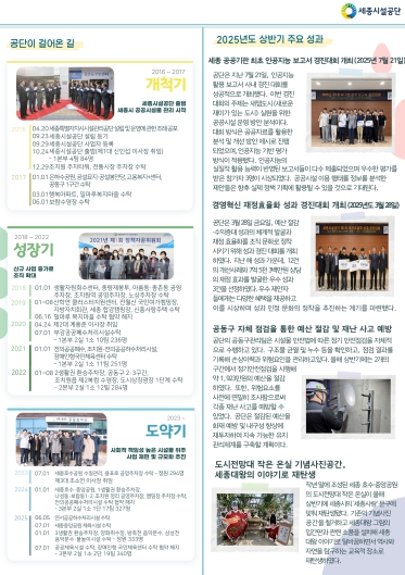 공단 소식지 '세우리'는 공단 홈페이지-알림마당-홍보센터-세우리 소식지에서 누구나 확인할 수 있으며, 매년 상하반기 각 1회 다양한 소식을 시민들에게 알릴 계획으로 많은 관심과 홍보를 부탁한다고 공단 관계자는 밝혔다.
